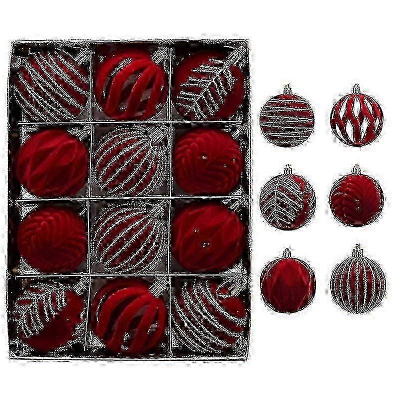 Christmas Christmas Balls Red Flocking Painted Balls Christmas Tree Decoration Hanging Balls 12pcs 6cm Christmas Flannel Balls - MXBC