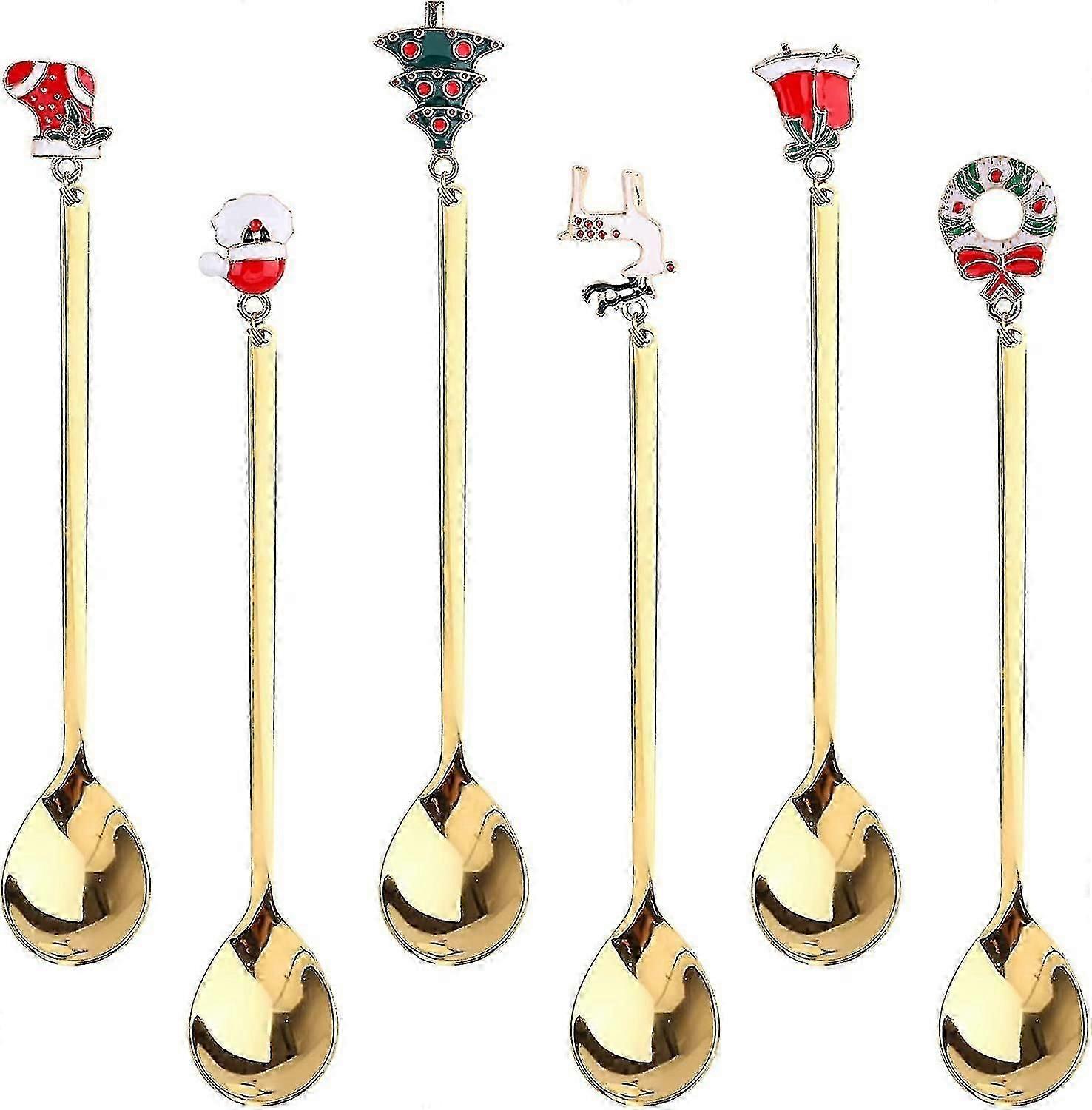 Christmas Coffee Spoons - 6 Pack Stainless Steel with Holiday Ornaments & Gift Box Set