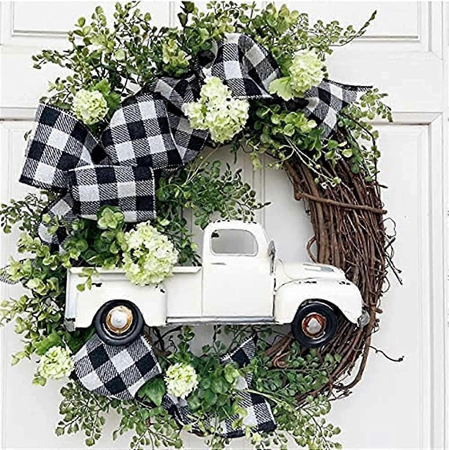 Christmas Decor, Artificial Green Pine Silk Ribbon Bow Wreath