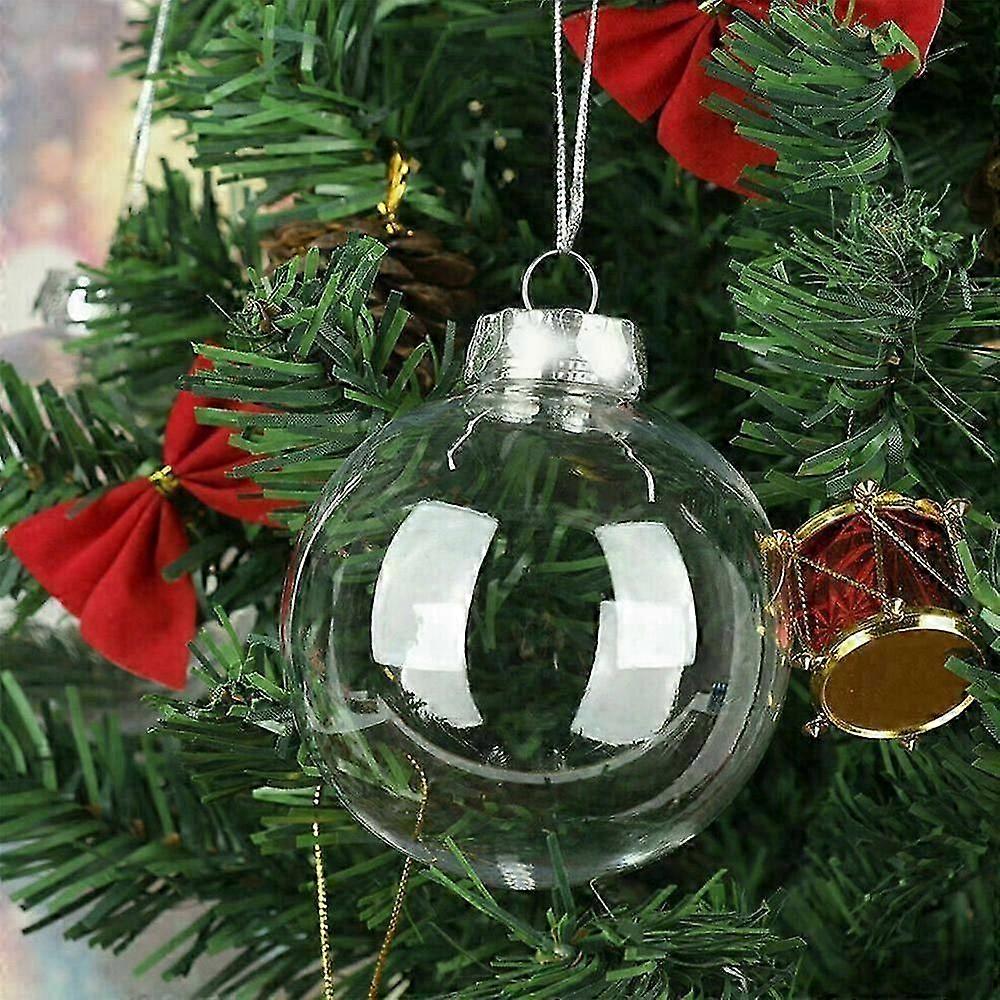 Christmas Decor Clear Plastic Ball Baubles Sphere Fillable DIY OrnamentMaterial:PESize:6cmColor:Transparent(ball)Cap top:Gold,SilverSuitable for Birthday, baby shower, wedding,ChristmasNote:1.Actual color may be slightly different from the image due to different monitor and light effect.2.Please allow 1-3cm deviation due to manual measurement.Package including:1/5/10 PCS Transparent ball(not included other)