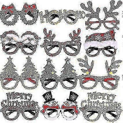 Christmas Decoration Glasses, 12 Pieces Of Christmas Glitter Party Glasses Frame A