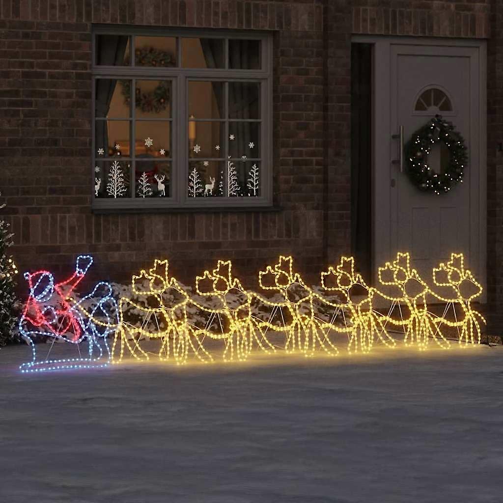 Farbe: MehrfarbigMaterial: PVCLichttyp: LED-LichterkettenStromquelle: SteckerSpannung: 220-240 VIP-Schutzart: IP44LanglebigWetterbeständig6 Rentiere ziehen den Schlitten von SantaInnen- / Außenbereich: Für Innen- und AußenbereichMontage erforderlich: Ja