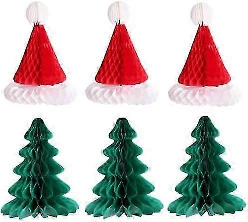 Christmas Decoration Paper Christmas Tree Table Decoration Christmas Hat Paper Honeycomb 3D Honeycomb Hanging Pendants Christmas Decorations (6 Pieces