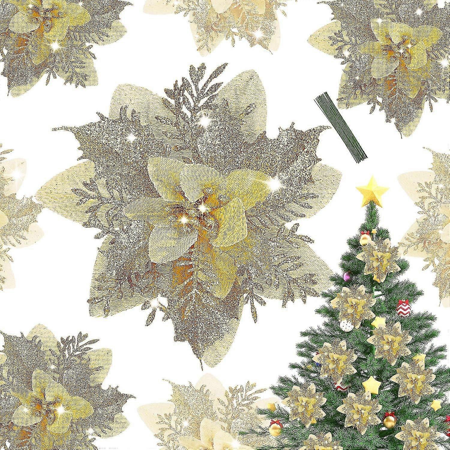 Christmas Decoration,Artificial Christmas Flower, Glittering Christmas Tree Garland,for Party Christmas Tree, Wreath, Wedding Decorations 20PCS Gold
