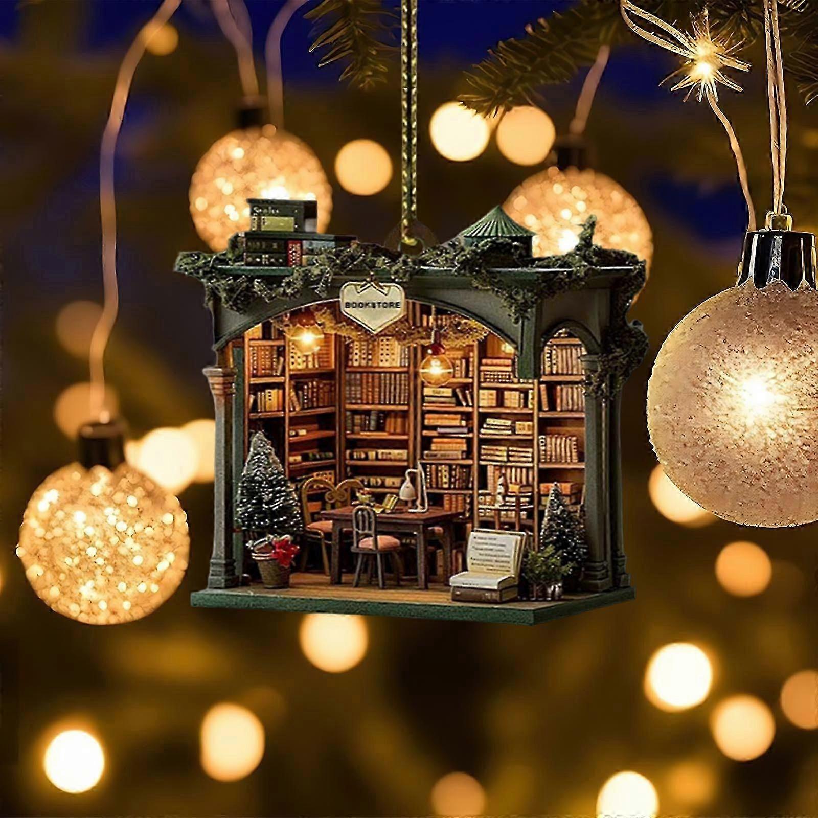 Christmas Decorations 2024 Christmas Acrylic Bookshelf Pendant Christmas Tree Hanging Decorations Stacking Christmas Interior Decorations For Books Lo