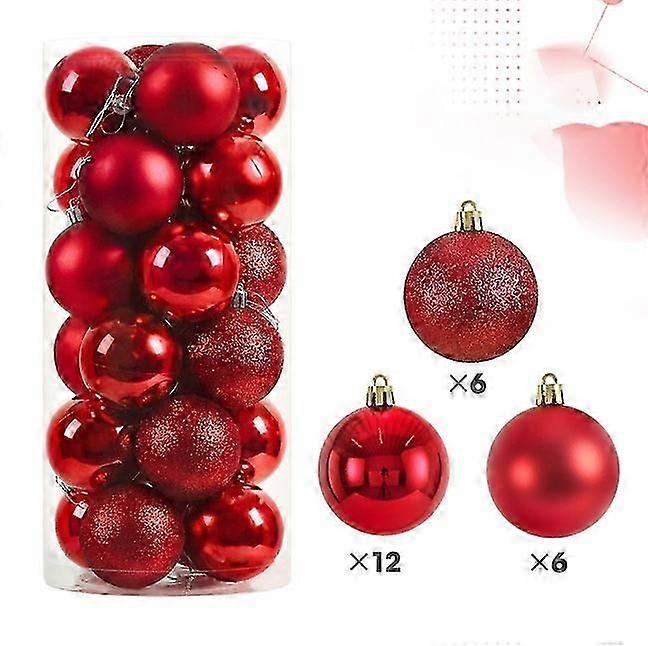 Christmas Decorations 24 Pieces Christmas Tree Bauble, Traditional Red Shatterproof Christmas Baubles for Christmas Tree Decoration, Wedding, Party De