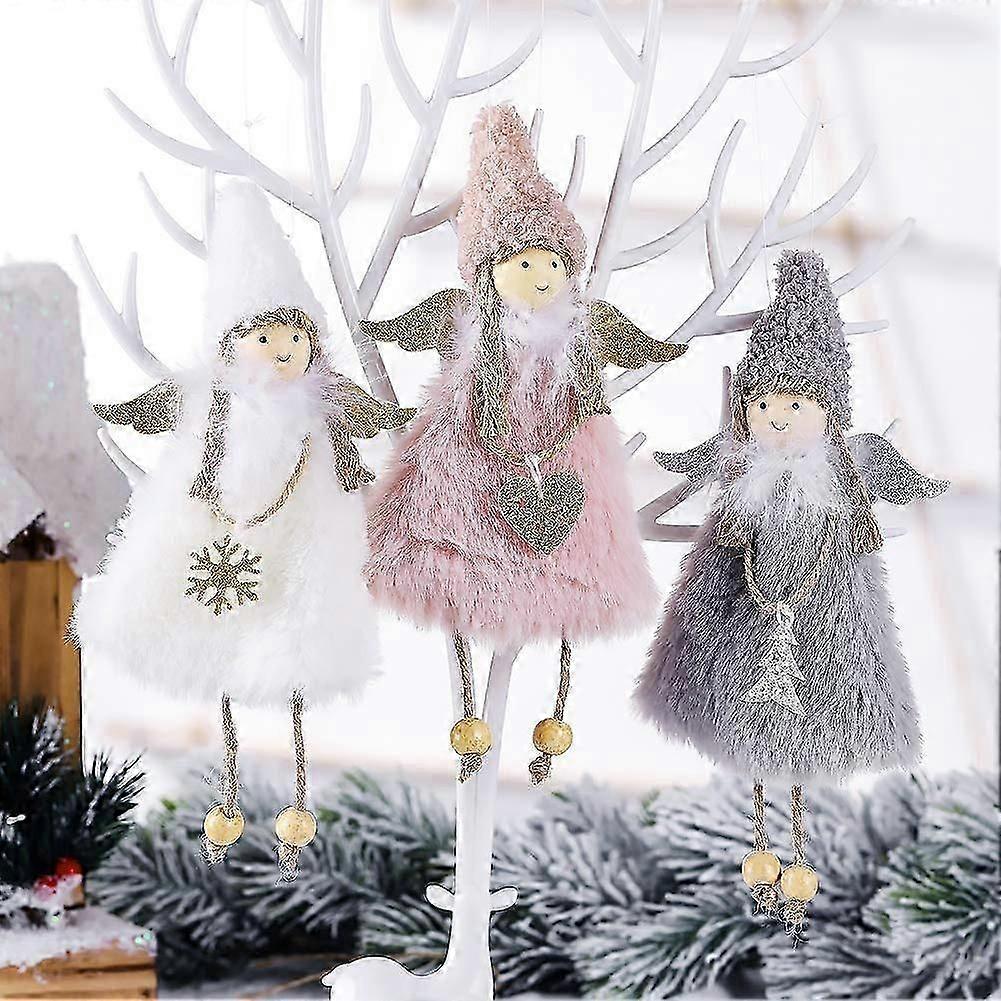 Christmas Decorations, 3 Pieces Christmas Tree Pendants, Plush Angel Doll Christmas Ornaments Tree Toy Holiday Baubles for Christmas Tree, Fireplaces,