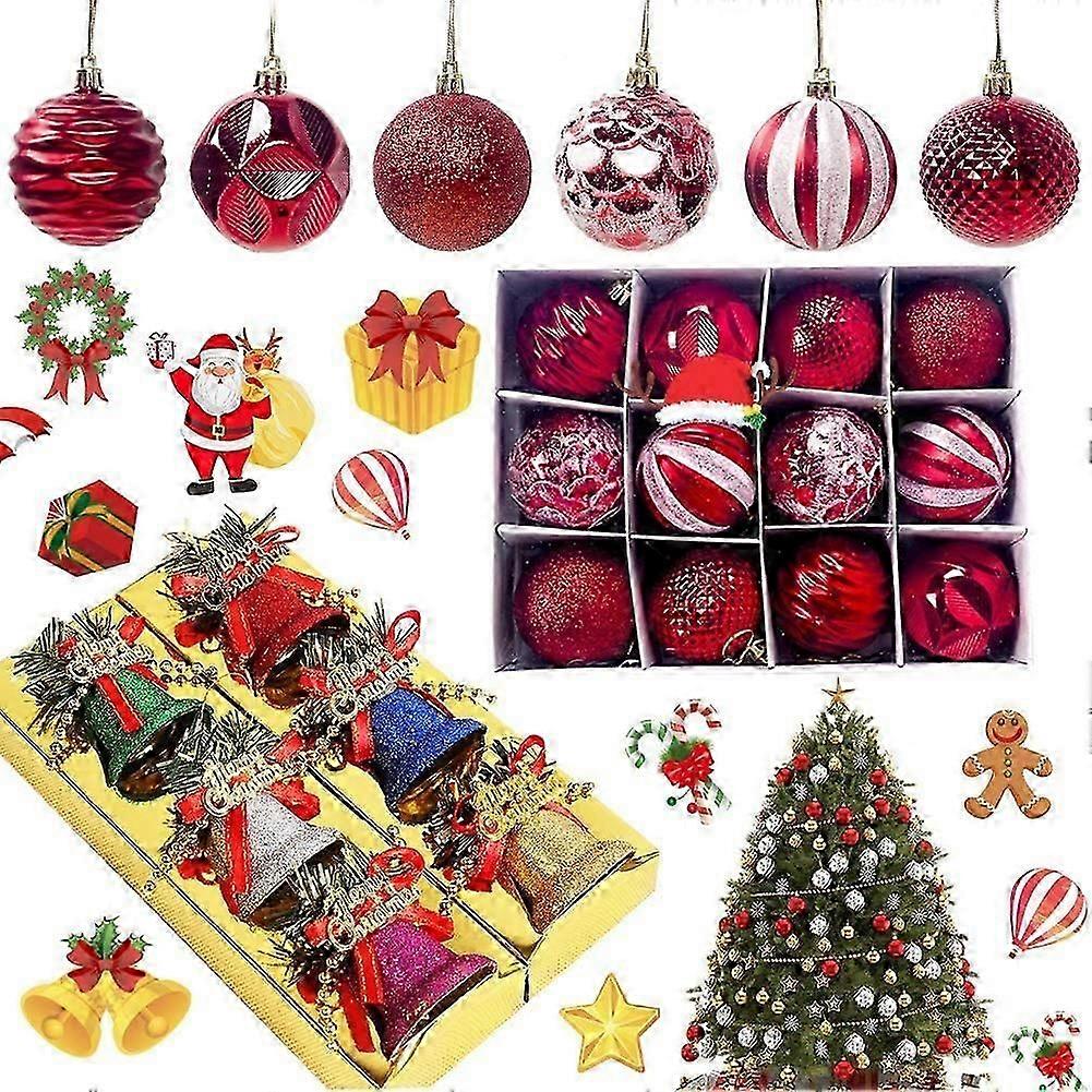 Christmas Decorations, 6 Pieces Christmas Tree Decoration Small Golden Bells+12 Pieces Christmas Bauble, Christmas Bauble for Christmas Tree Decoratio