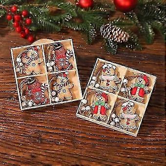 Christmas Decorations Cartoon Four Palace Lattice 12pcs Wooden Doll Pendant