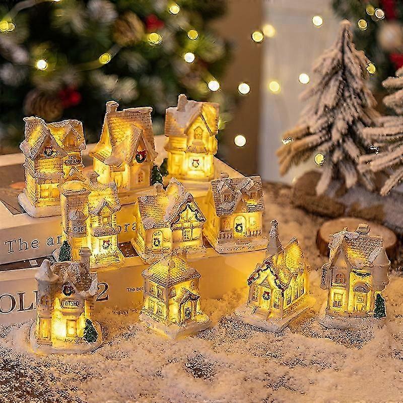 Christmas decorations Christmas resin small house LED light house Christmas micro landscape ornaments Christmas gift A white