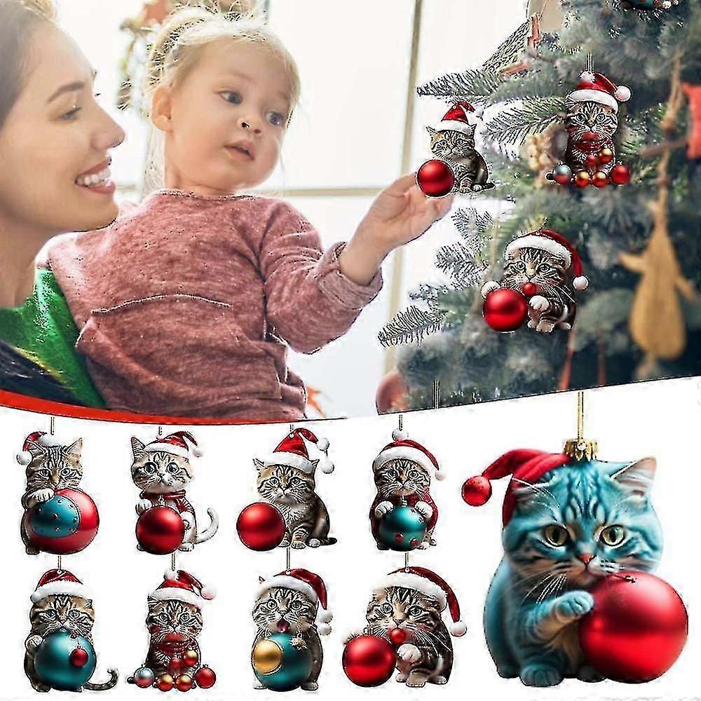 Christmas Decorations Christmas Tree Cats Pendant 2d Acrylic Christmas Hanging Decoration Funny Christmas Cats Ornament SZRH A-F