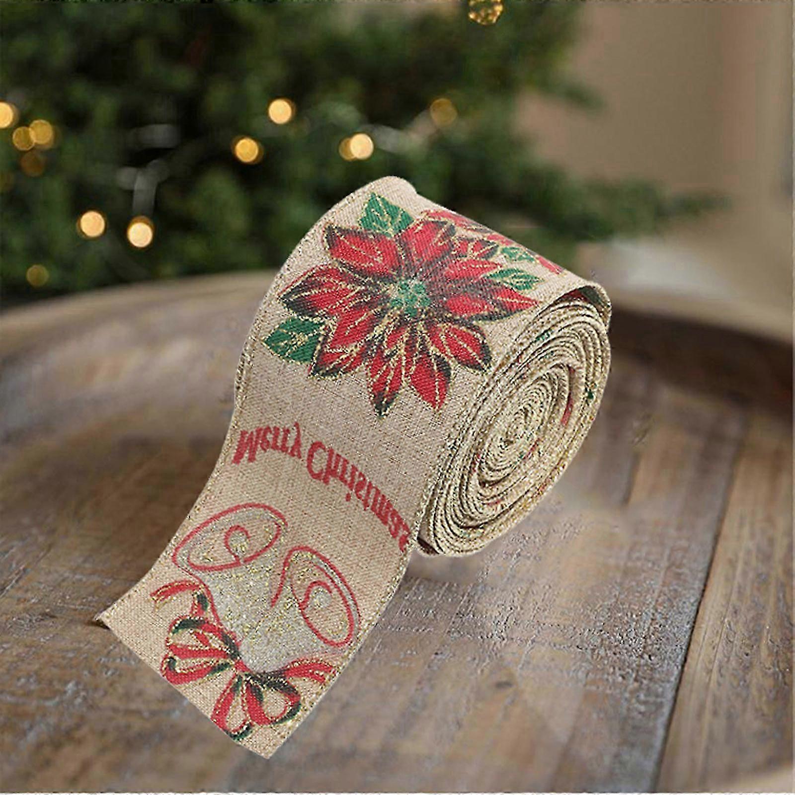 Christmas Decorations Composite Fashion Linen Christmas Ribbon Boutique Ribbon Decoration Christmas Tree Printing Ribbon 2m