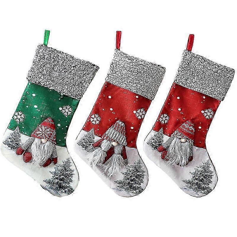 Christmas Decorations Fashion Christmas Stockings Gift Bag Christmas Tree Decoration Supplies Christmas Eve Holiday Gifts Ornaments3PcsGreen+Red