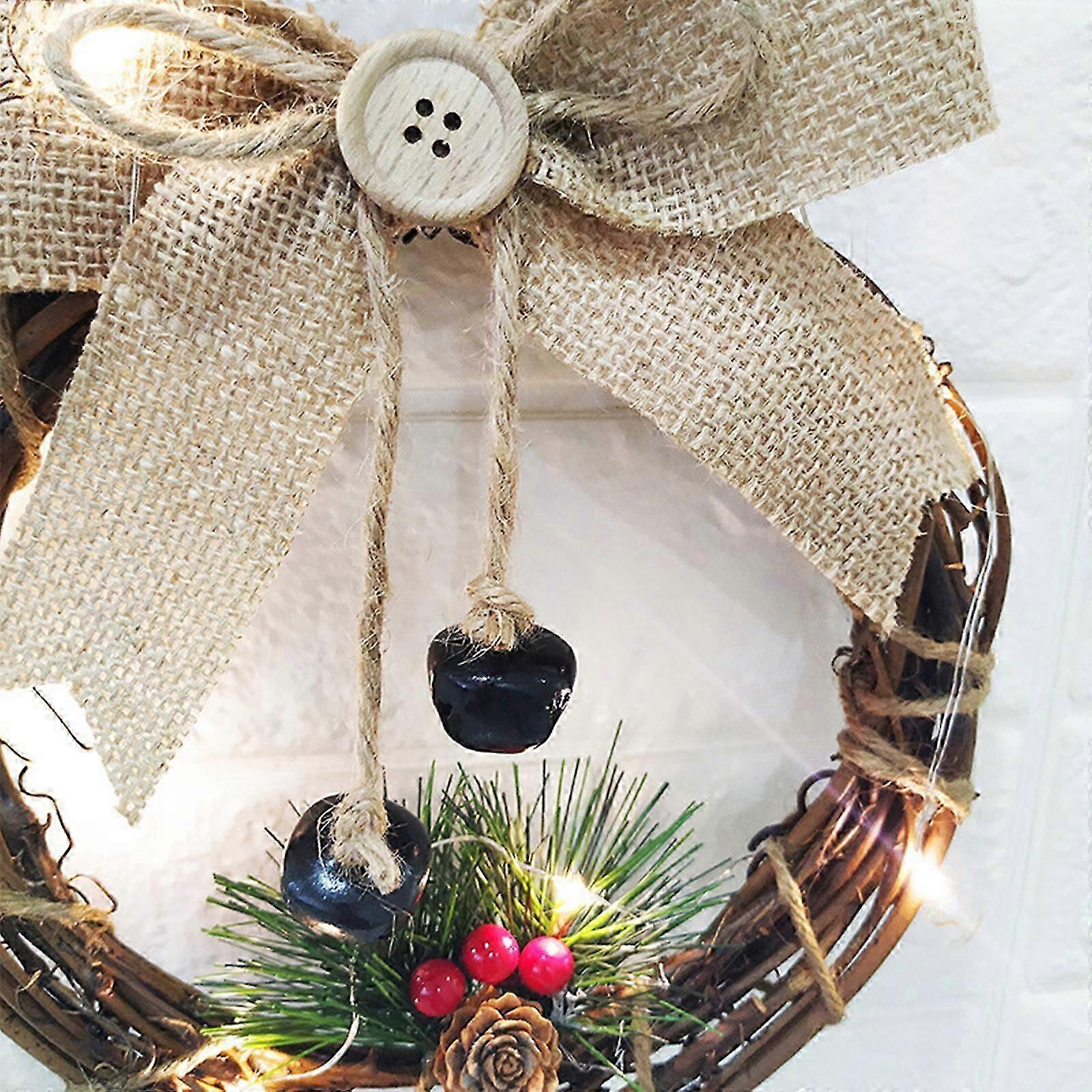 Christmas Decorations Snowman Vine Circle Artifical Wreath Light Strings Party Faux Xmas With Led Handmade Festival Bow