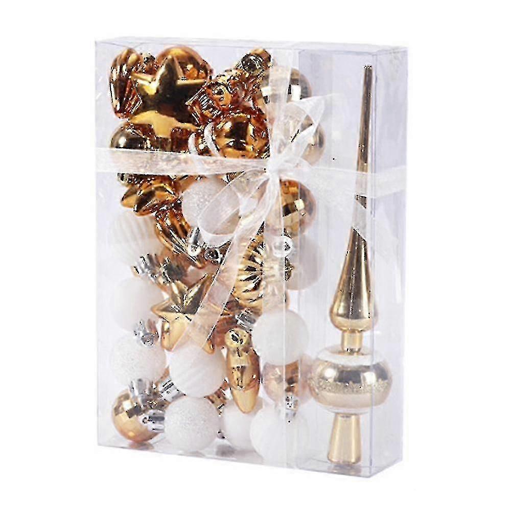 Christmas Decorations,34 Christmas Baubles Christmas Decoration Set, Plastic Shatterproof, Christmas Tree Decoration1box-gold
