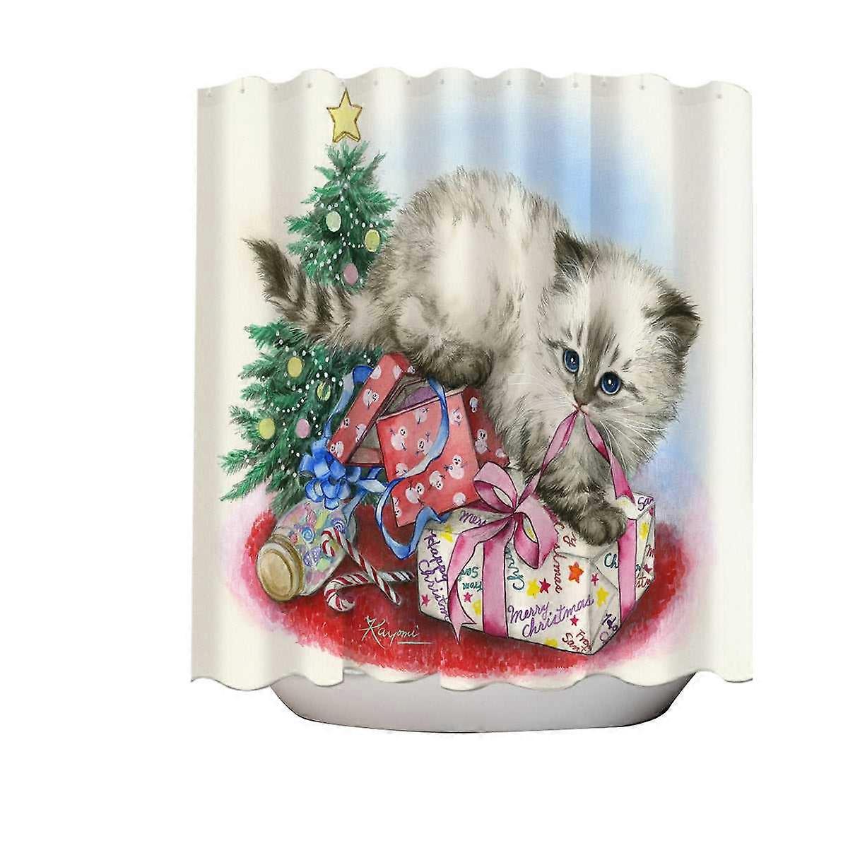 Christmas Design Cute Kitten is Opening Presents Shower Curtain