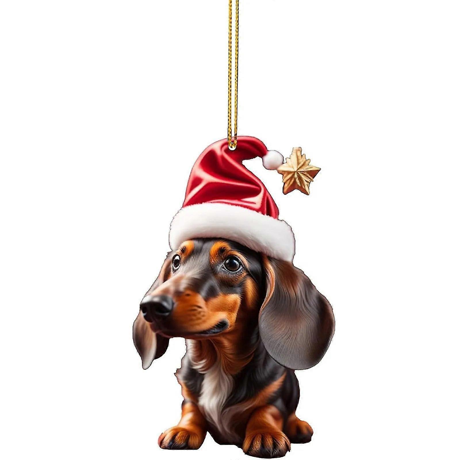Christmas Dog Ornament Acrylic Car Interior Accessories Mirror Hanging Charm Pendant For Home Office Decorations