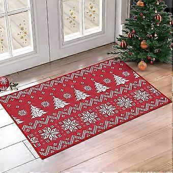Christmas Doormat Xmas Holiday Red Christmas Tree & Snowflake Welcome Mat for Home Decoration 40x60cm (Red)