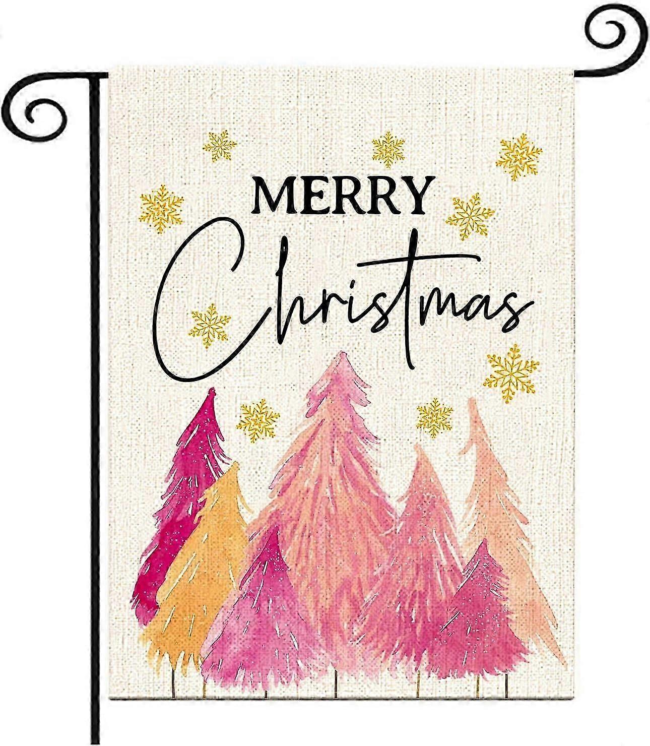 Christmas Garden Flag 12x18 Christmas Holiday Farmhouse Garden Flag for Home Garden Farm Decoration (Christmas Pink Tree)