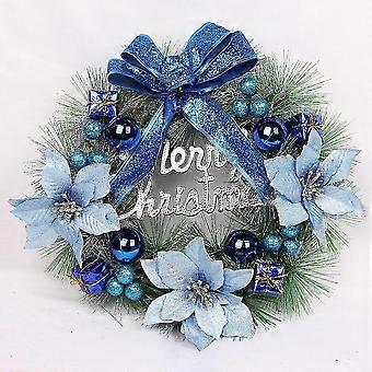 Christmas Garland Decorations Wreath Decorated with Bowknot Jingle for Xmas Festival Tree Display Indoor Outdoor Xmas Decoration (Blue)