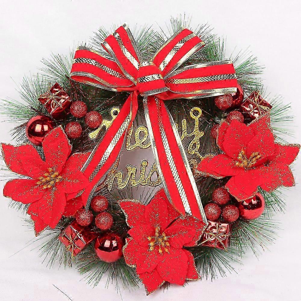 Christmas Garland Decorations Wreath Decorated with Bowknot Jingle for Xmas Festival Tree Display Indoor Outdoor Xmas Decoration (Red)