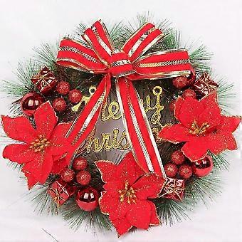 Christmas Garland Decorations Wreath Decorated with Bowknot Jingle for Xmas Festival Tree Display Indoor Outdoor Xmas Decoration (Red)