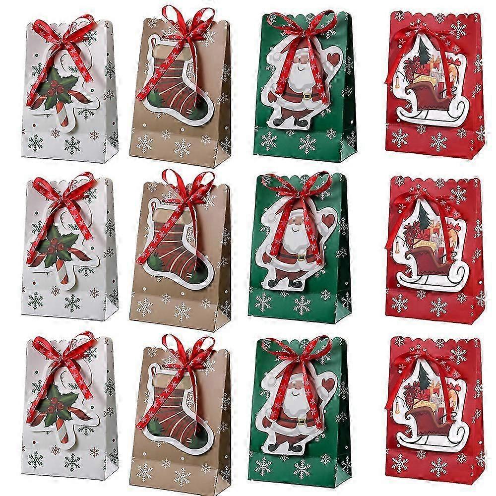 Christmas Gift Bags, Holiday Theme, Snowflake Ribbons, Reusable Cardboard