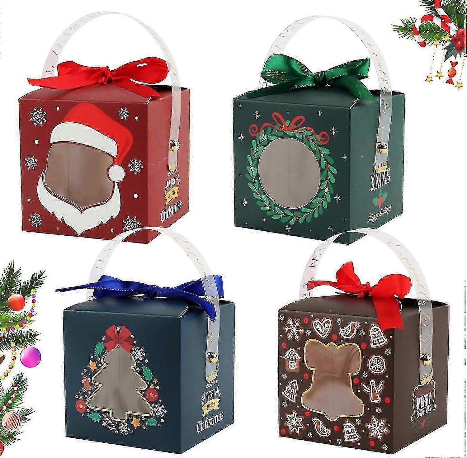 Christmas Gift Box, 8 Pack Christmas Paper Boxes, Christmas Candy Boxes with Handle and Window for Christmas Gift, Christmas Decoration