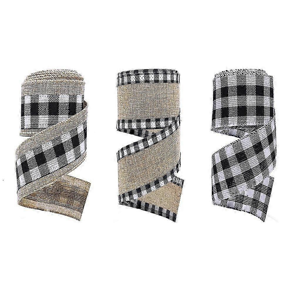 Christmas Gingham Ribbons Burlap Wired Edge Ribbons Check Fabric Craft Ribbon for Christmas Wedding