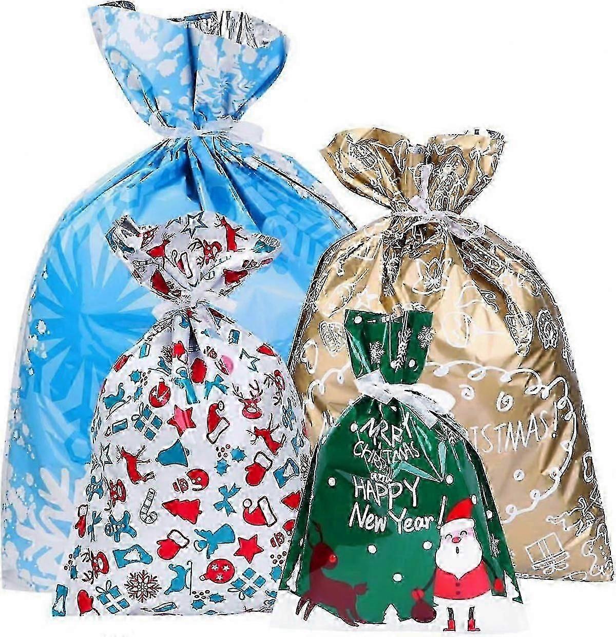 Christmas Goody Bags Holiday Treats Bags Christmas Party Favor Bags with Ribbon Ties 30pcs (4 Sizes)