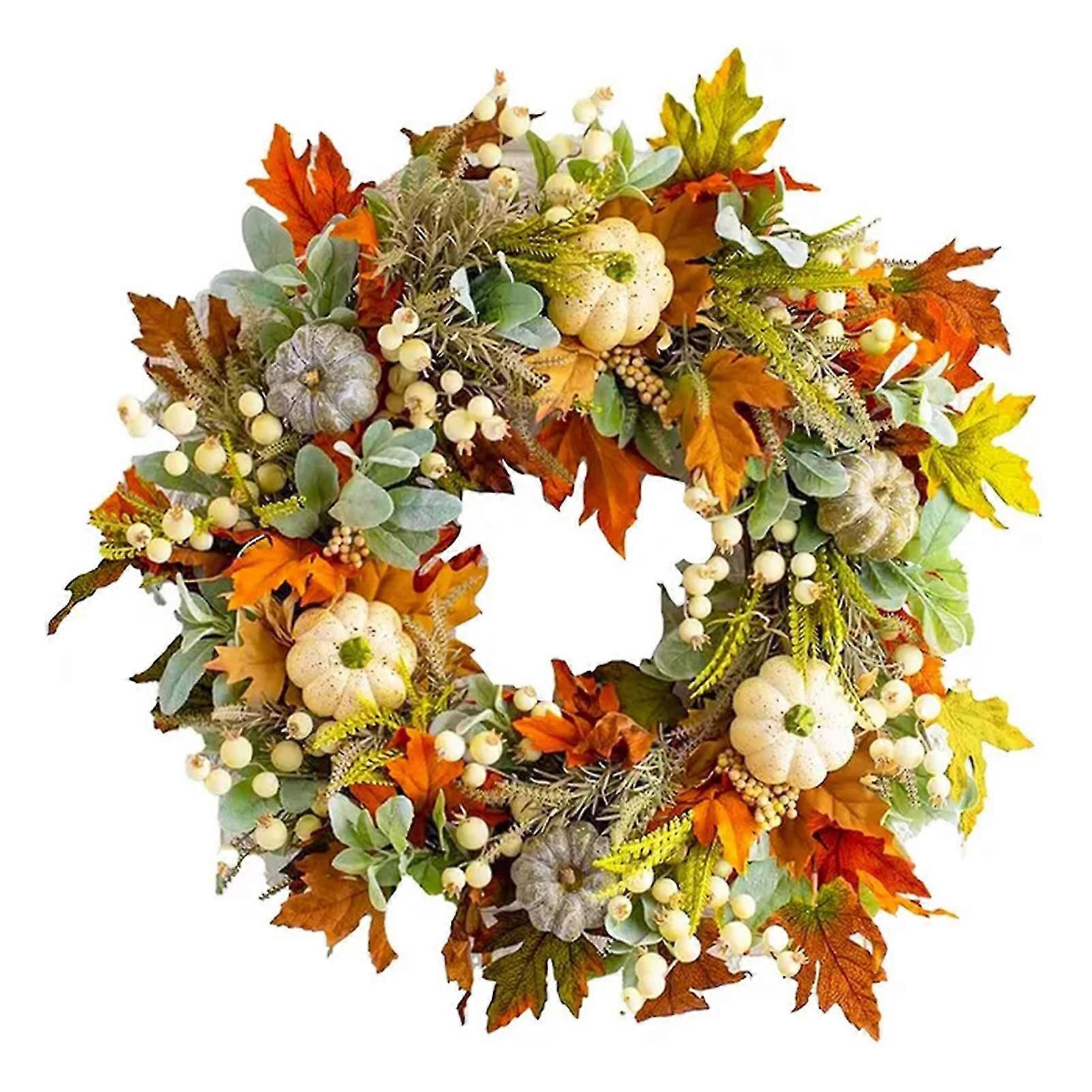 Christmas Hanging Wreath with Pumpkins Holiday Party Decorative Wreath for Porch Door