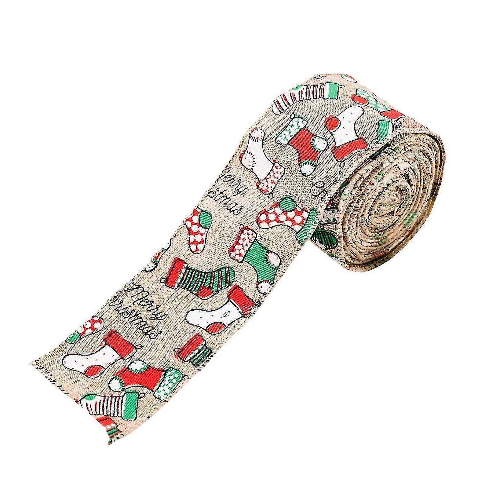 Features:Festive Christmas Ribbons: These lovely patterned ribbons featuring santa, deer, and creative designs are perfect for adding a touch of holiday cheer to your gifts and decorations.Create a Warm Atmosphere: With their cute appearance and festive themes, these ribbons are sure to create a warm and happy atmosphere at your christmas party or gathering.Premium Quality: Our Christmas ribbons are made with attention to detail and are designed to withstand the holiday season. They are durable, fade-resistant, and will add a touch of elegance to your gifts and decorations.Versatile Party Decoration: Whether you're hosting a Christmas party or decorating your home, these ribbons are a must-have. Use them to create stunning garlands, hang them from the ceiling, or wrap them around banisters for a festive touch.Spread Christmas Joy: These ribbons are not only decorative but also symbolic of the holiday season. Use them to spread joy and happiness, and create memorable moments with your loved ones.Specification:Material: BurlapSize: 5m*6cmWeight: 71gInclude: 1 * Christmas Ribbon