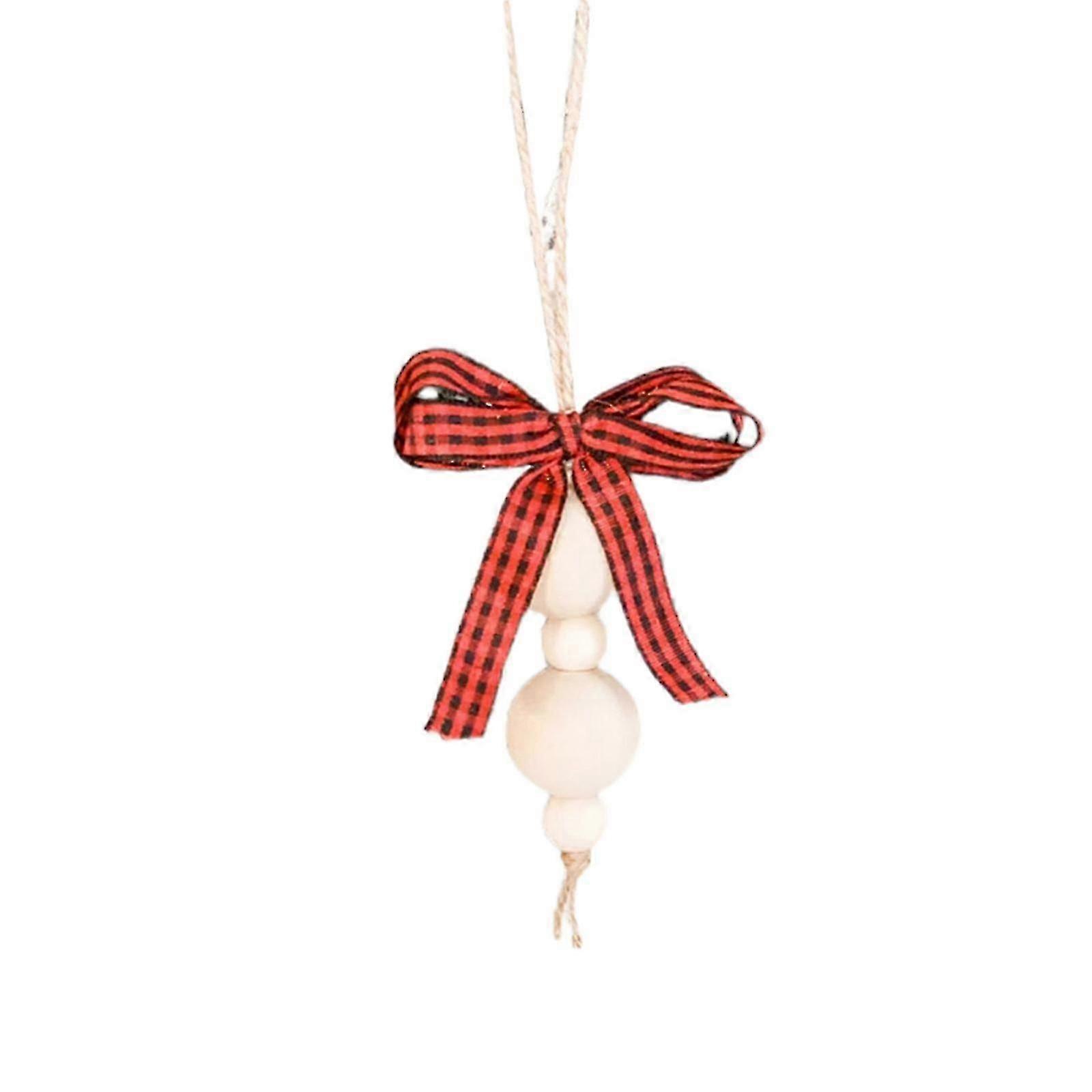 christmas movies Red Christmas Tree Hanging Wooden Bead String Decoration Plaid Ribbon Decoration Christmas Tree Decoration