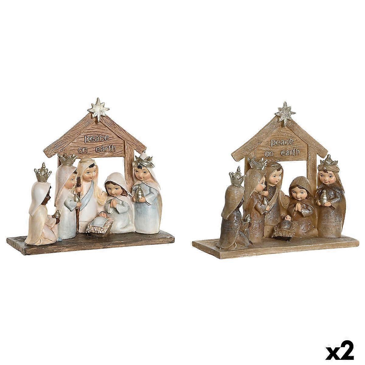 Christmas nativity set DKD Home Decor Blue Brown Golden Resin 17 x 7 x 15,5 cm 7 x 7 x 15,5 cm (2 Units)