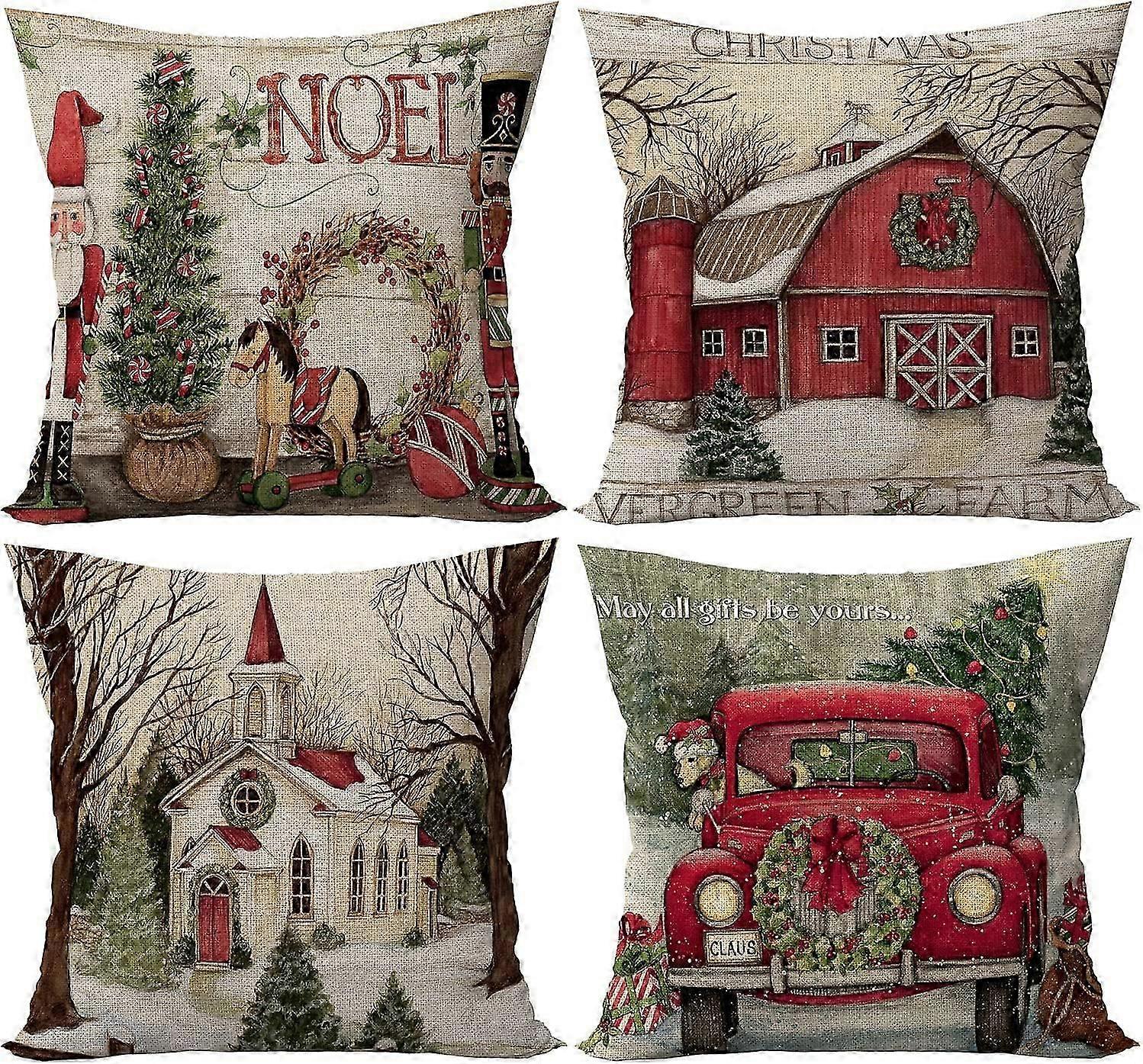 Christmas Pillowcase 4 Pieces Merry Christmas Decoration Home Christmas Pillowcase Sofa
