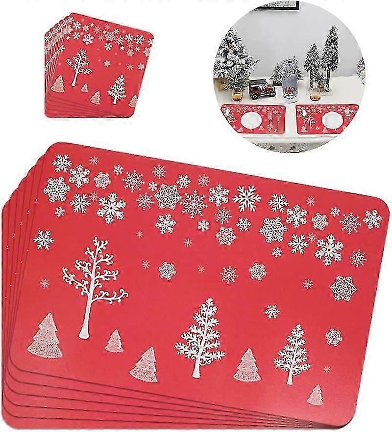 Christmas Placemats, 6PCS Christmas Table Mat and 6PCS Cup Mats with Christmas Elk Pattern for Christmas Dining Table Decorations (Grey)