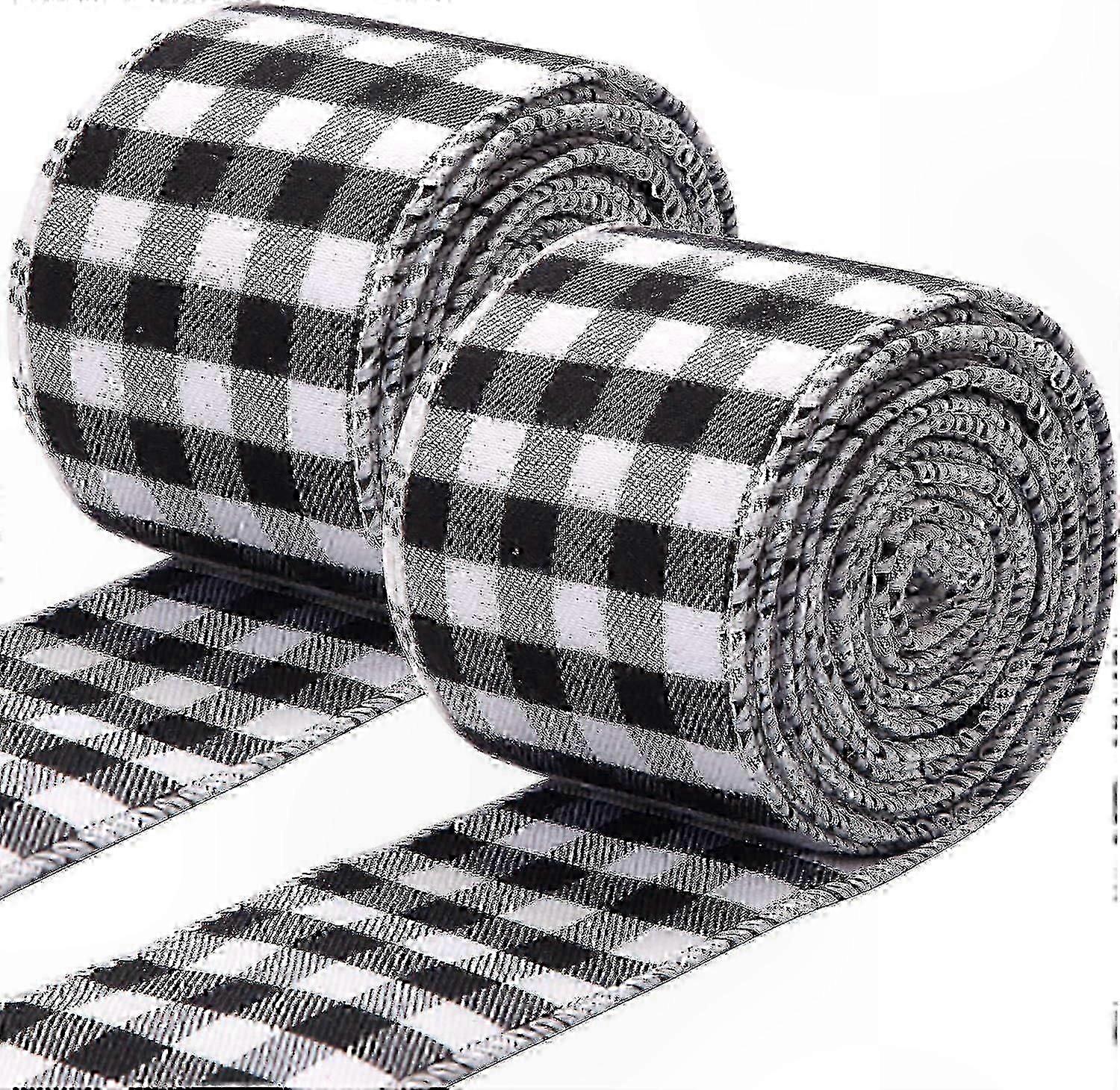 Christmas Plaid Burlap Wired Ribbon for Crafts, 5cm x 6m, White & Black Wrapping Ribbon for Holiday Decor, Floral Bows