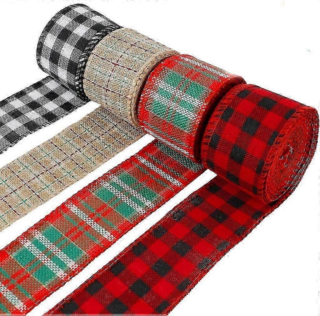Christmas Plaid Ribbon Burlap Ribbon DIY Christmas Craft Decoration 4 Rolls