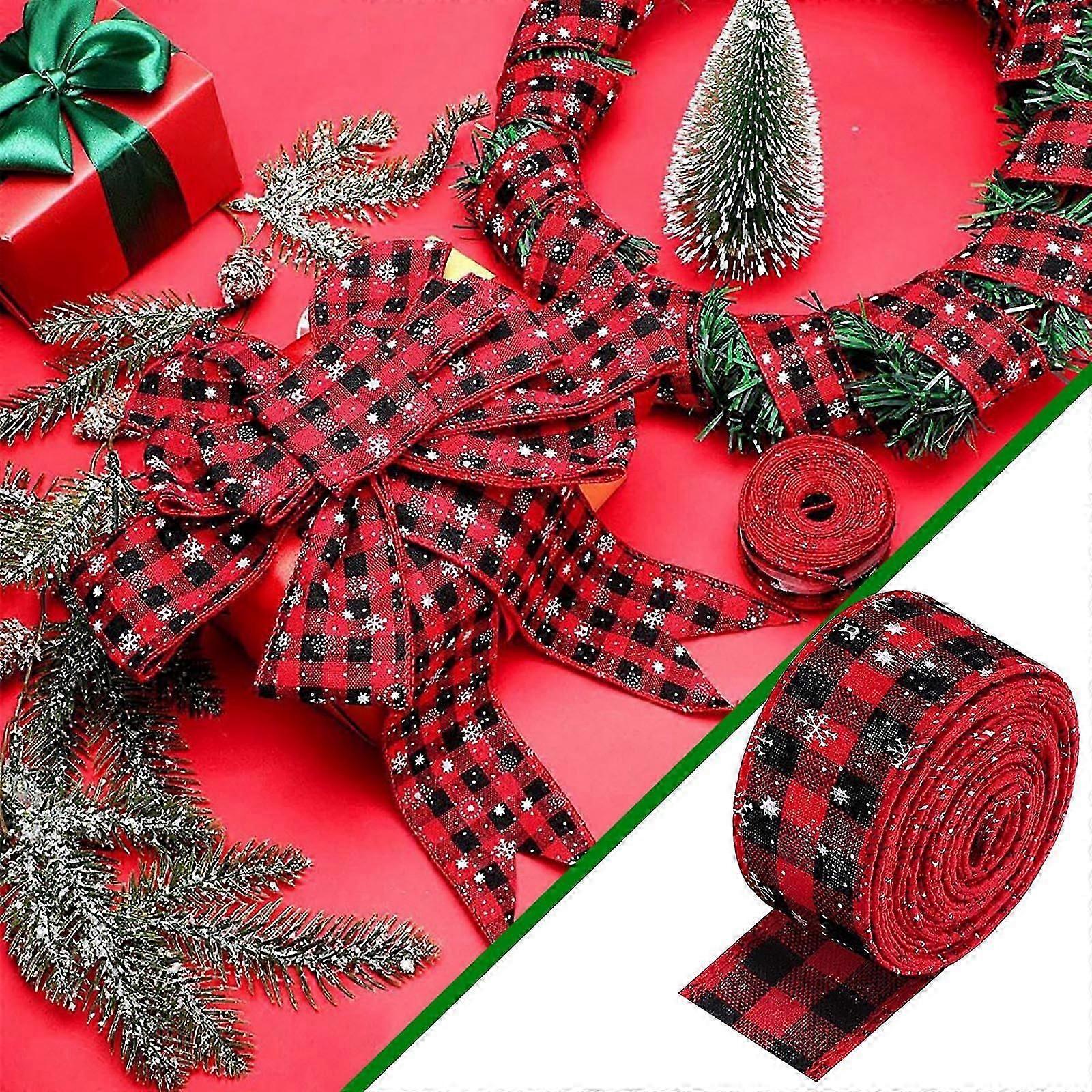 Christmas Red And Black Plaid Ribbon Printed With Snowflake Tie Bowknot Decoration Imitation Plaid Ribbon Snowflake Ribbon Holiday Ornaments