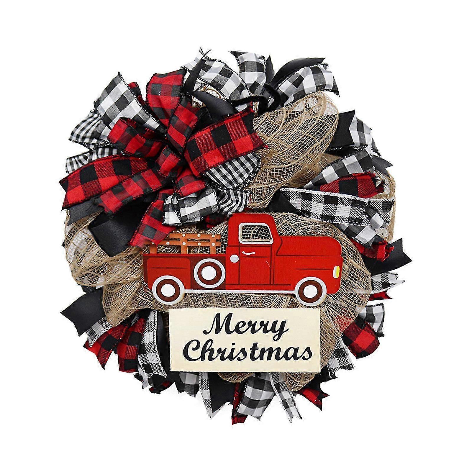 Christmas Red Truck Wreath Christmas Gift Decoration Door Hanging Ribbon Christmas Wreath Door Hanging