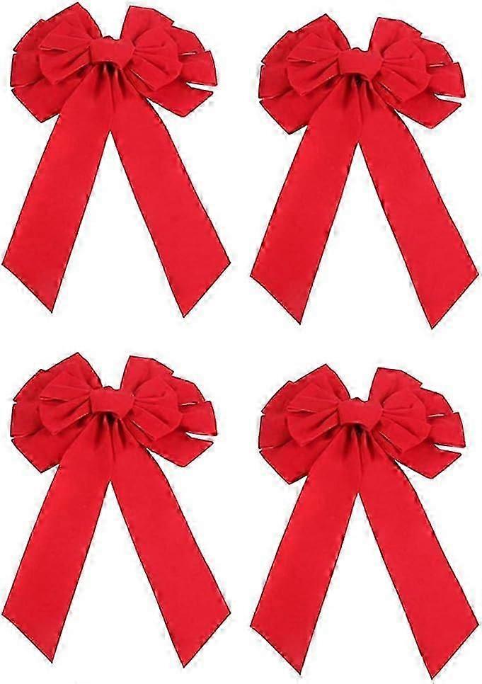 Christmas Red Velvet Bow 25X45Cm Christmas Decorative Bows For Christmas Indoor And Outdoor Decorations Christmas Decoration(Red)(4Pcs)