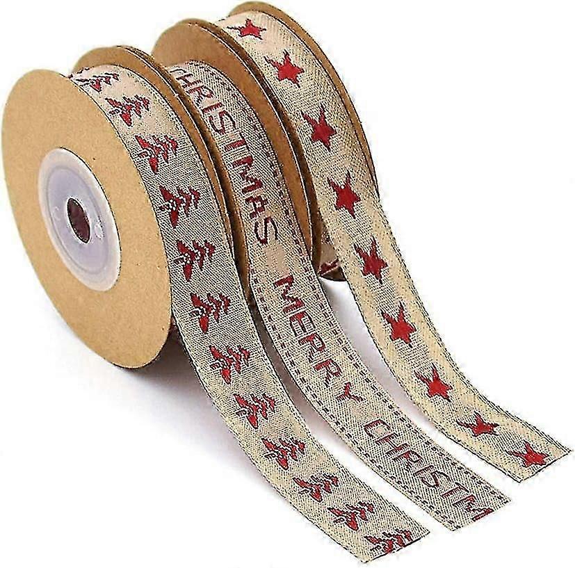 Christmas Ribbon, 3 Rolls Christmas Tree Star Ribbons With The Words Merry Christmas Red Green Satin Ribbon For Diy Craft Gifts Decoration Gift Packag