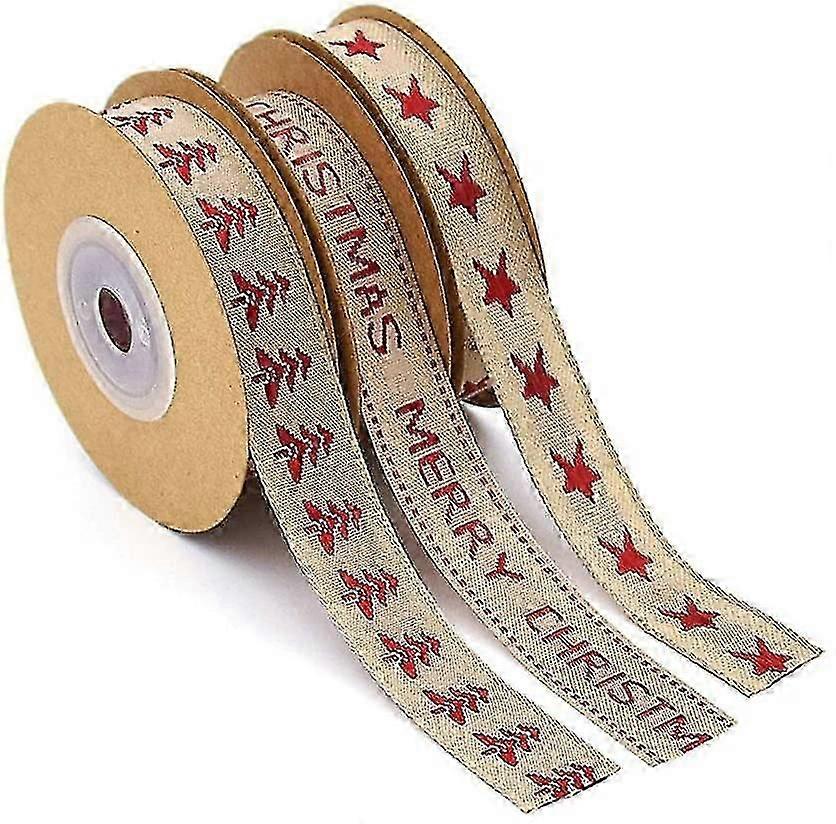 Christmas Ribbon 3 Rolls Christmas Tree Star Ribbons With The Words Merry Christmas Satin Ribbon For Decoration Gift Wrapping