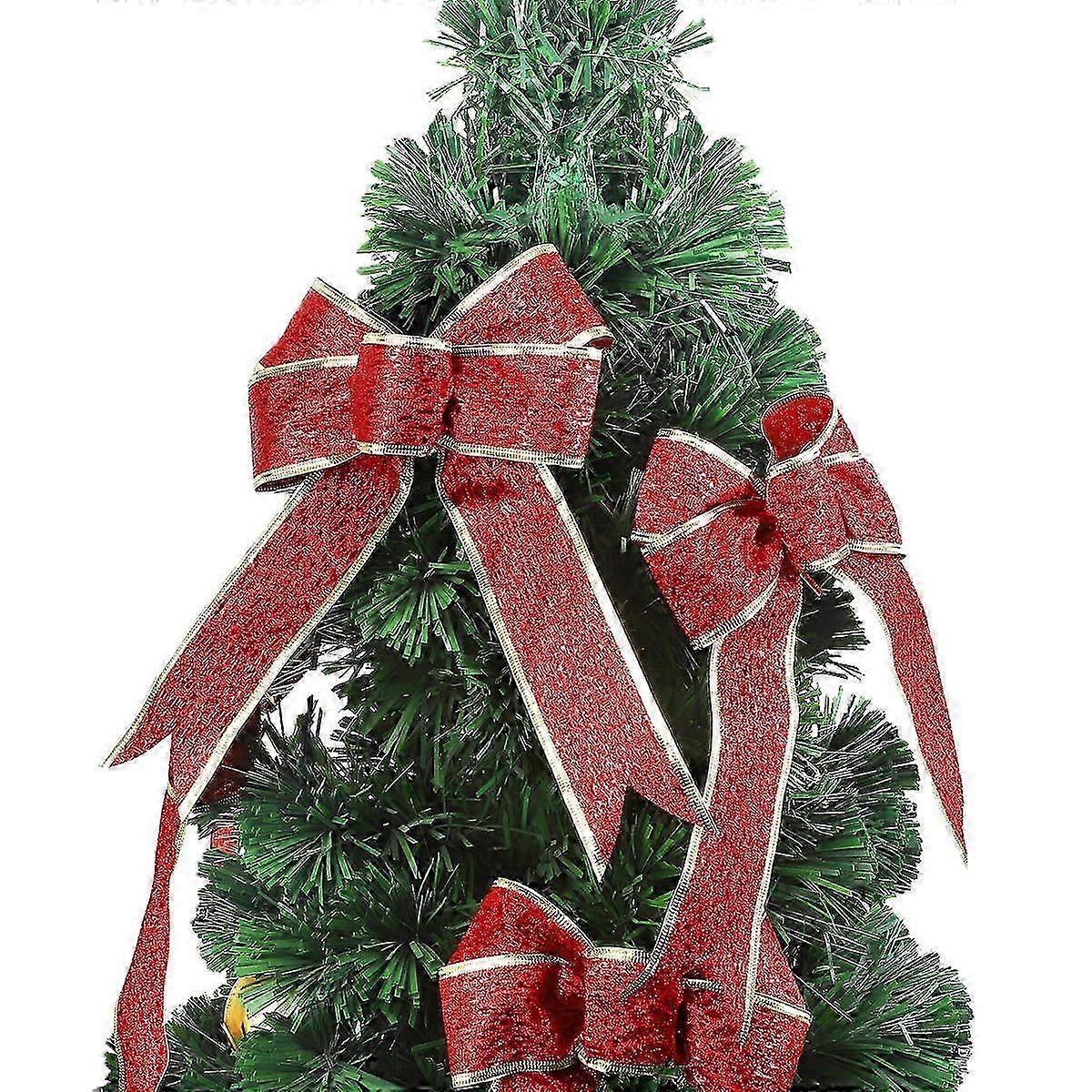 Christmas Ribbon Bow Fabric Gift Knot Ribbon for Christmas Tree 5Pcs Red