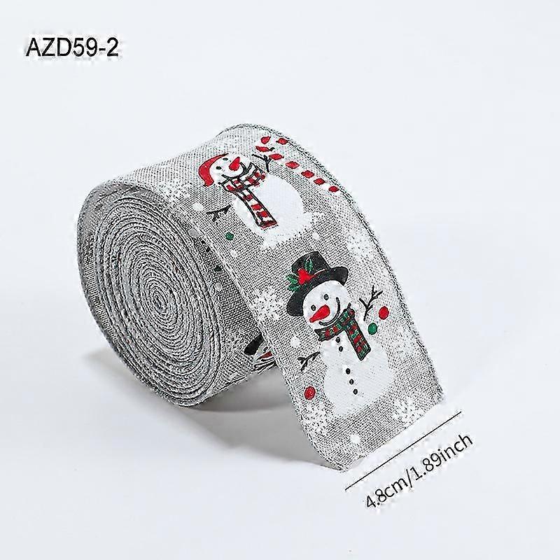 Christmas ribbon colorful cartoon snowman candy linen printed ribbon Christmas tree wreath gift bow decoration 4.8CM gray snowman ribbon / 2 meters