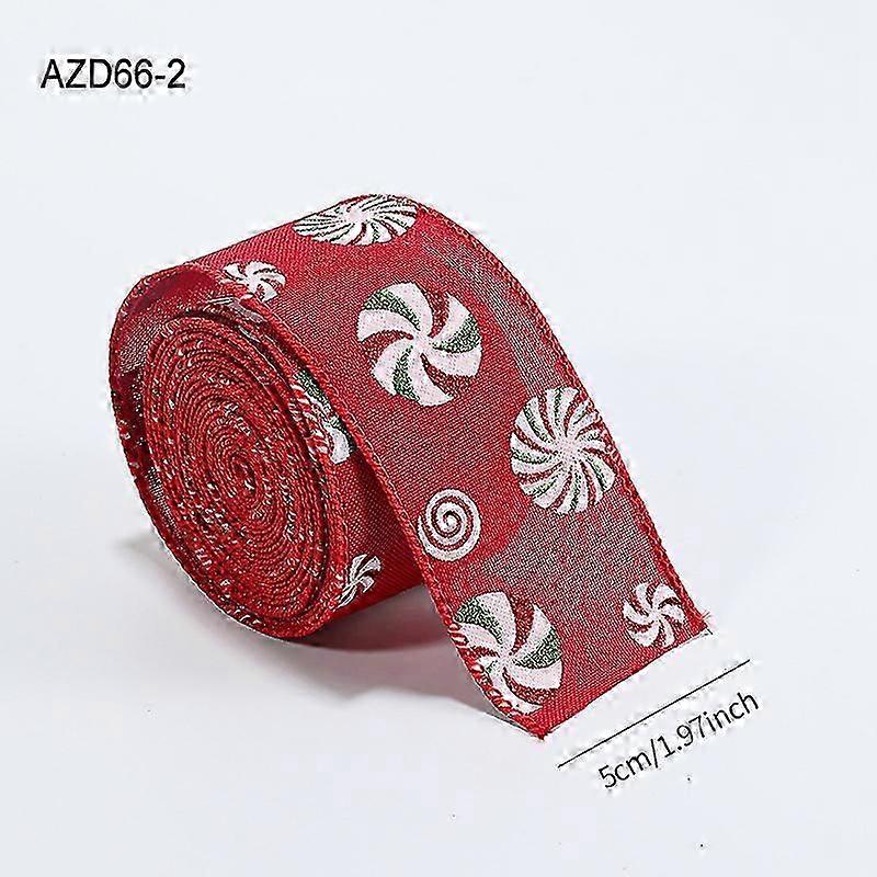 Christmas Ribbon Colorful Cartoon Snowman Candy Linen Printed Ribbon Christmas Tree Wreath Gift Bow Decoration 5CM Red Candy Ribbon / 2 meters