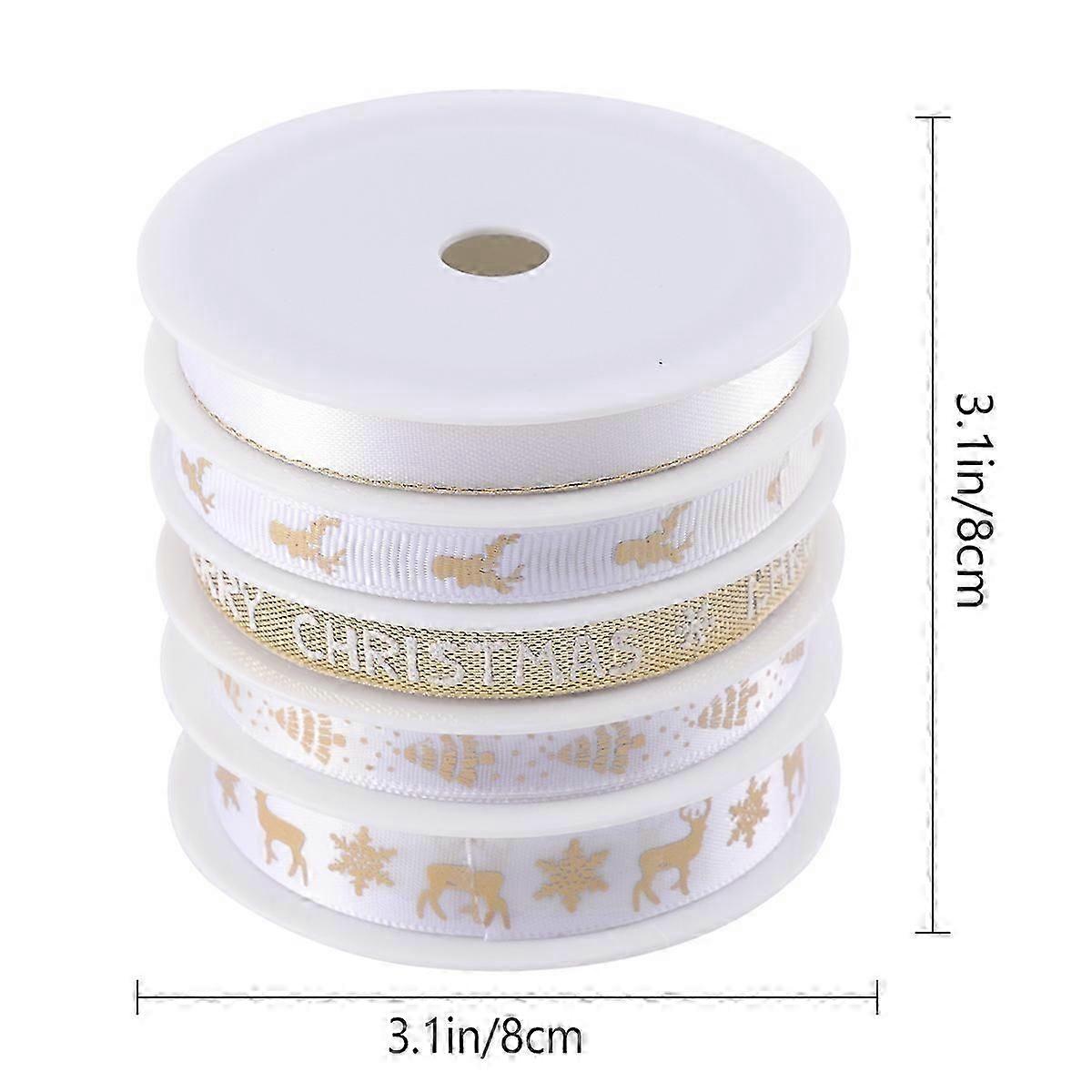 Christmas Ribbon Decorative Ribbon for Gift Wrapping 5 Rolls White Golden