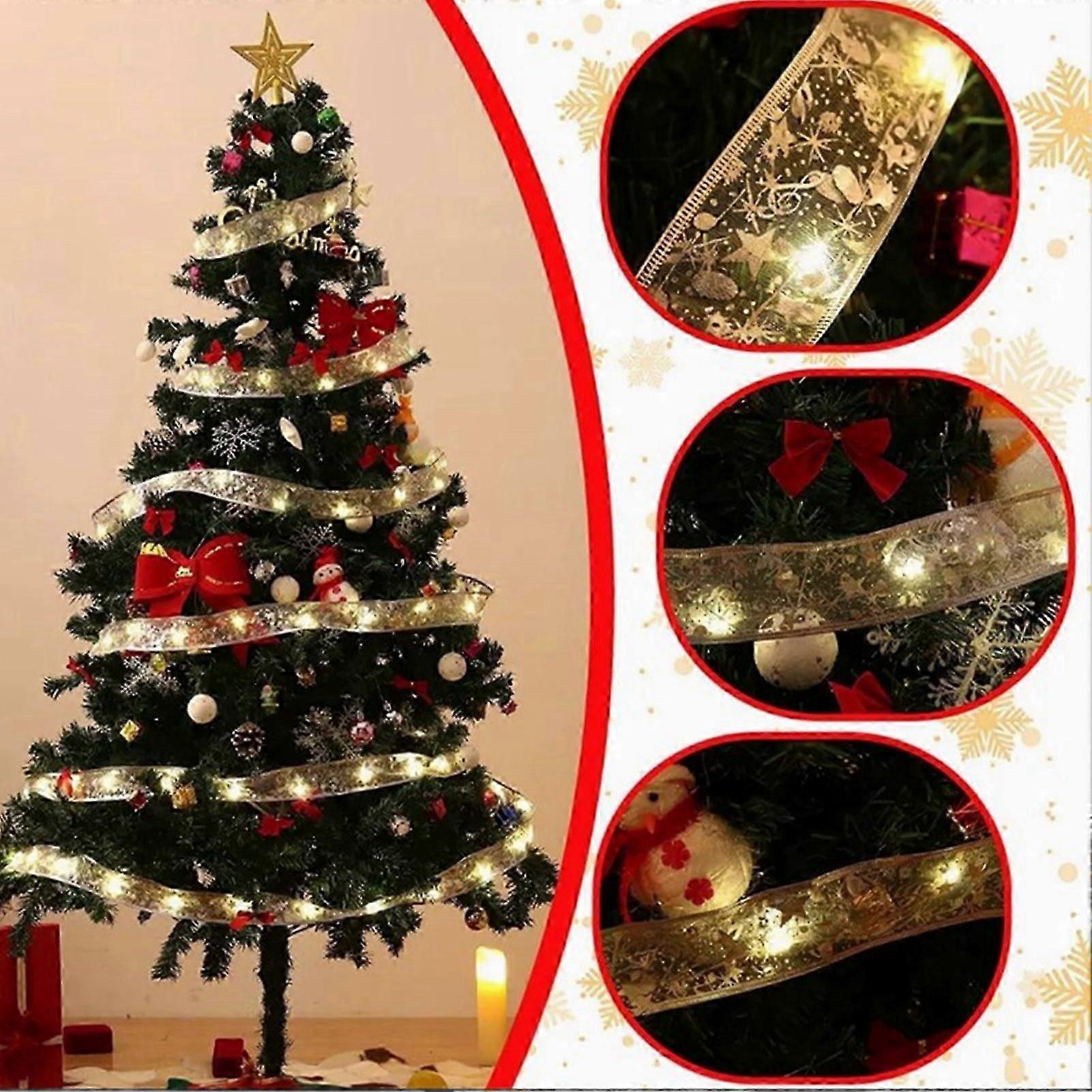 Christmas Ribbon Fairy Lights Gold Ribbon Warm Light 50 LED Christmas Tree Ribbon for Christmas Decorations 164ft