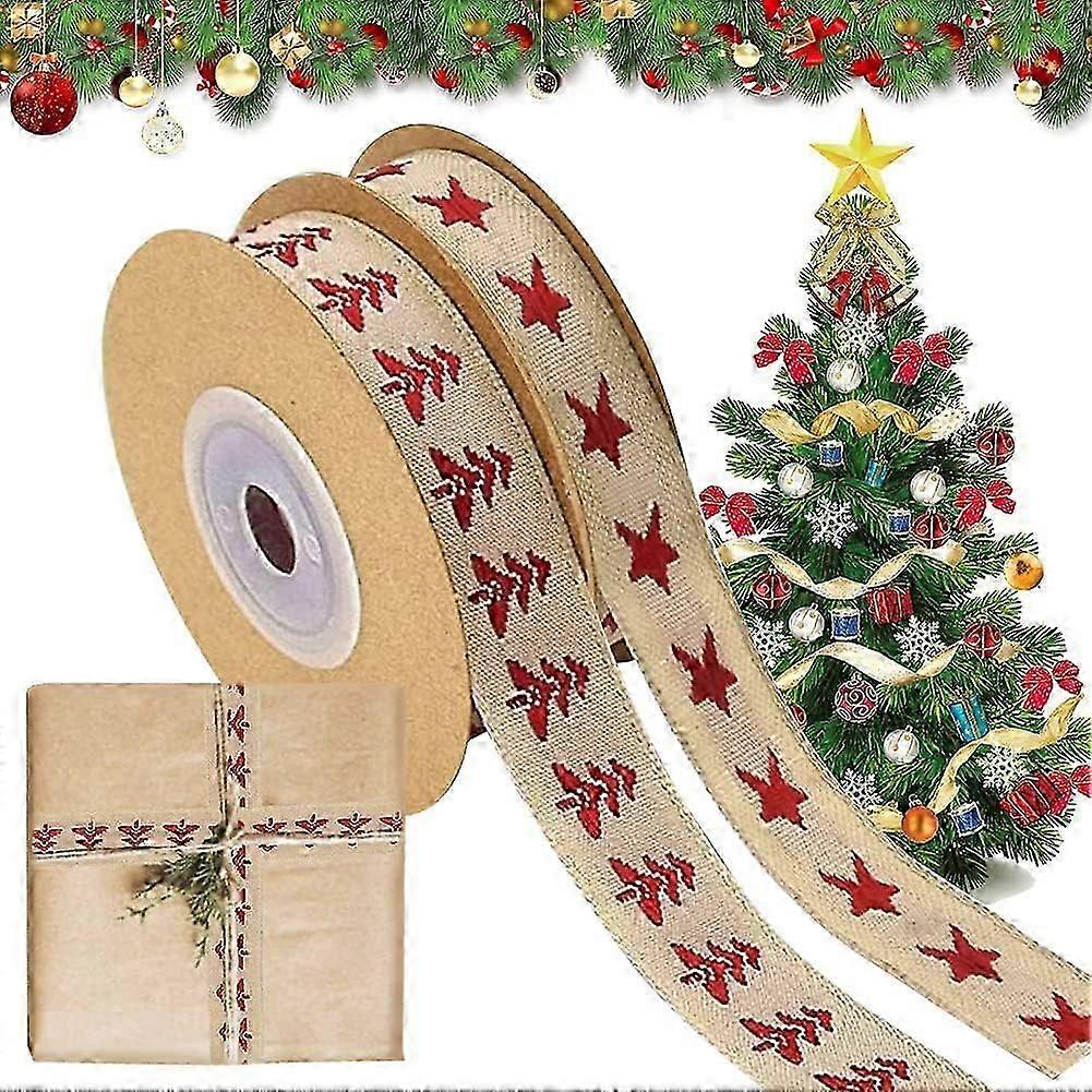 Christmas Ribbon for Gift Wrapping, 2 Rolls Brown Satin Ribbon Christmas Decorative Cotton Ribbon, Gift Ribbons 15mm Wedding Satin Ribbon for Crafts C