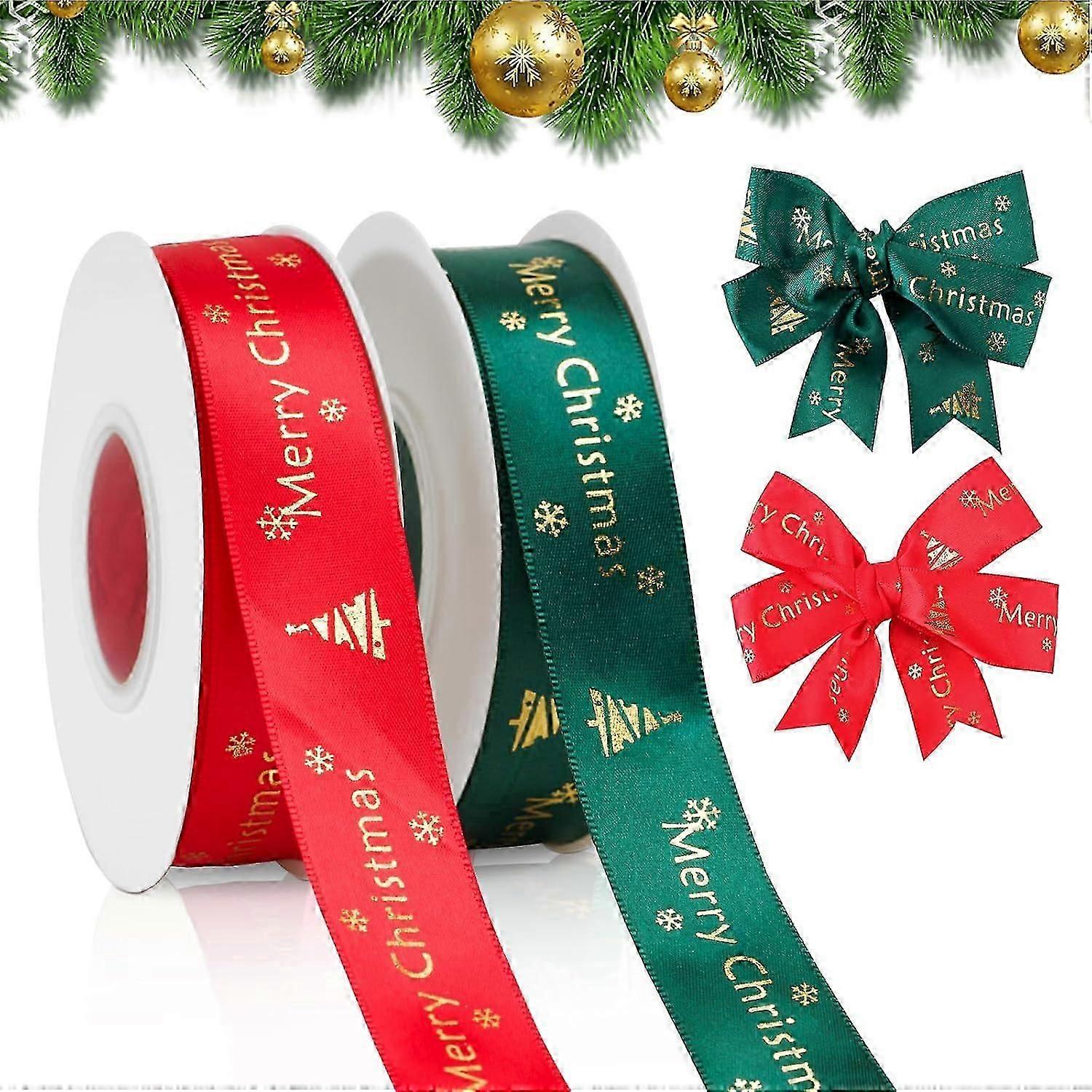 Christmas ribbon for gift wrapping, 2 rolls of satin ribbons with Christmas motifs in red and green (25 yards x 25 mm)